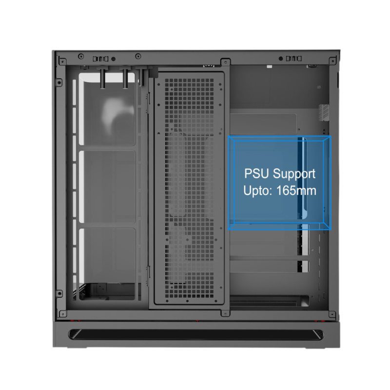 | Pre-Install Fan | 1 × 360 mm (120 mm × 3) Mono Frame Bottom Fan (Reverse Blade)1 × 240 mm (120 mm × 2) Mono Frame Rear Fan |