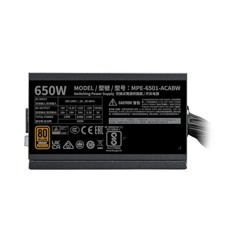 Cooler Master MWE Bronze 650 V3 230V 80 Plus Bronze 650 Watt ATX 3.1 Power Supply