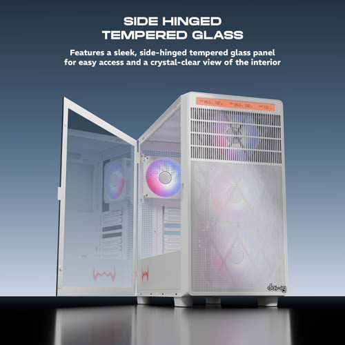 Take your gaming setup to the next level with this feature-packed ATX/mATX chassis crafted for gaming enthusiasts. With stunning ARGB fans, a center infinity mirror, and an LED control switch, it’s as stylish as it is powerful. Enjoy easy access with a side-hinged tempered glass panel, magnetic dust filters on the top and bottom, versatile cooling support, flexible drive options, and I/O ports along with Type-C.