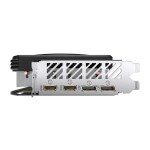 The front panel of the card features a variety of outputs, such as DisplayPort 2.1 and HDMI 2.1. DisplayPort 2.1 technology with UHBR 13.5 offers up to 54 Gb/s of display link bandwidth and enables high-refresh 4K (up to 480 Hz) or 8K (up to 165 Hz) gaming on next-gen displays. HDMI 2.1 supports up to 48 Gb/s bandwidth and a range of higher resolutions and refresh rates, including 8K @ 60 fps, 4K @ 120 fps, and even up to 10K.