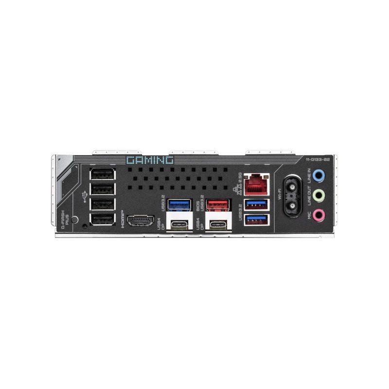 1 x Q-Flash Plus button 2 x antenna connectors (2T2R) 1 x HDMI port(Note) 2 x USB4® USB Type-C® ports (DisplayPort*) 1 x USB 3.2 Gen 2 Type-A port (red) 3 x USB 3.2 Gen 1 ports 4 x USB 2.0/1.1 ports 1 x RJ-45 port 3 x audio jacks * Actual support may vary by CPU. |
