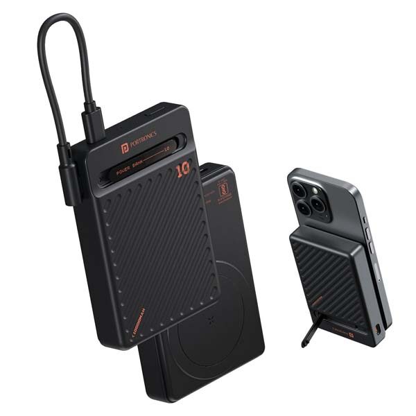 Portronics Chyro 10000mAh 15W Magnetic Wireless Fast Charging Powerbank with MagSafe Mobile Stand,in-Built Type C Cable With 20W Output,For iPhone 12 & Above, Android & Other Qi Enabled Devices (Black)