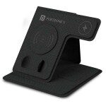 Portronics Freedom Fold 3 15W 3 in 1 Foldable MagSafe Compatible Wireless Charger for iPhone 12 & Above Series, Apple Watches & AirPods with Premium PU Leather, 1M Type C Charging Cable (Black)