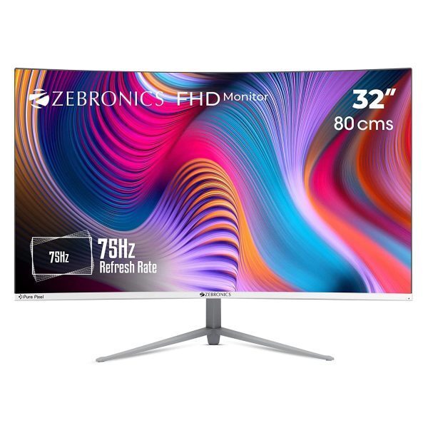 ZEBRONICS Zeb-AC32FHD LED Curved 75Hz 80Cm (32″) (81.28 Cm) 1920×1080 Pixels FHD Resolution Monitor with HDMI + VGA Dual Input, Built-in Speaker, Max 250 Nits Brightness, Black